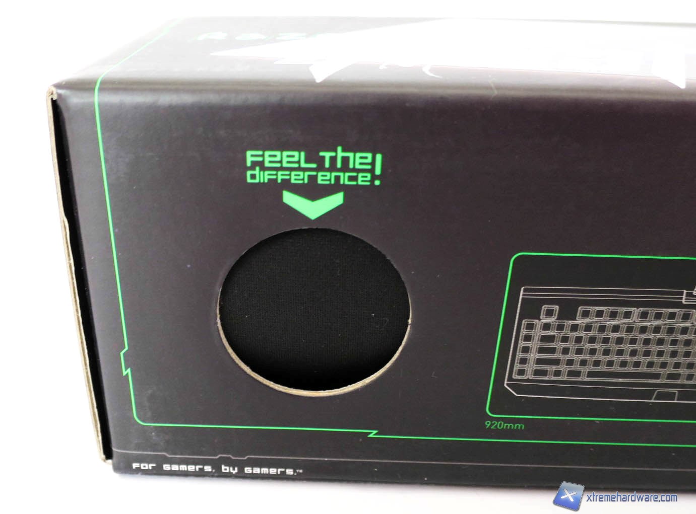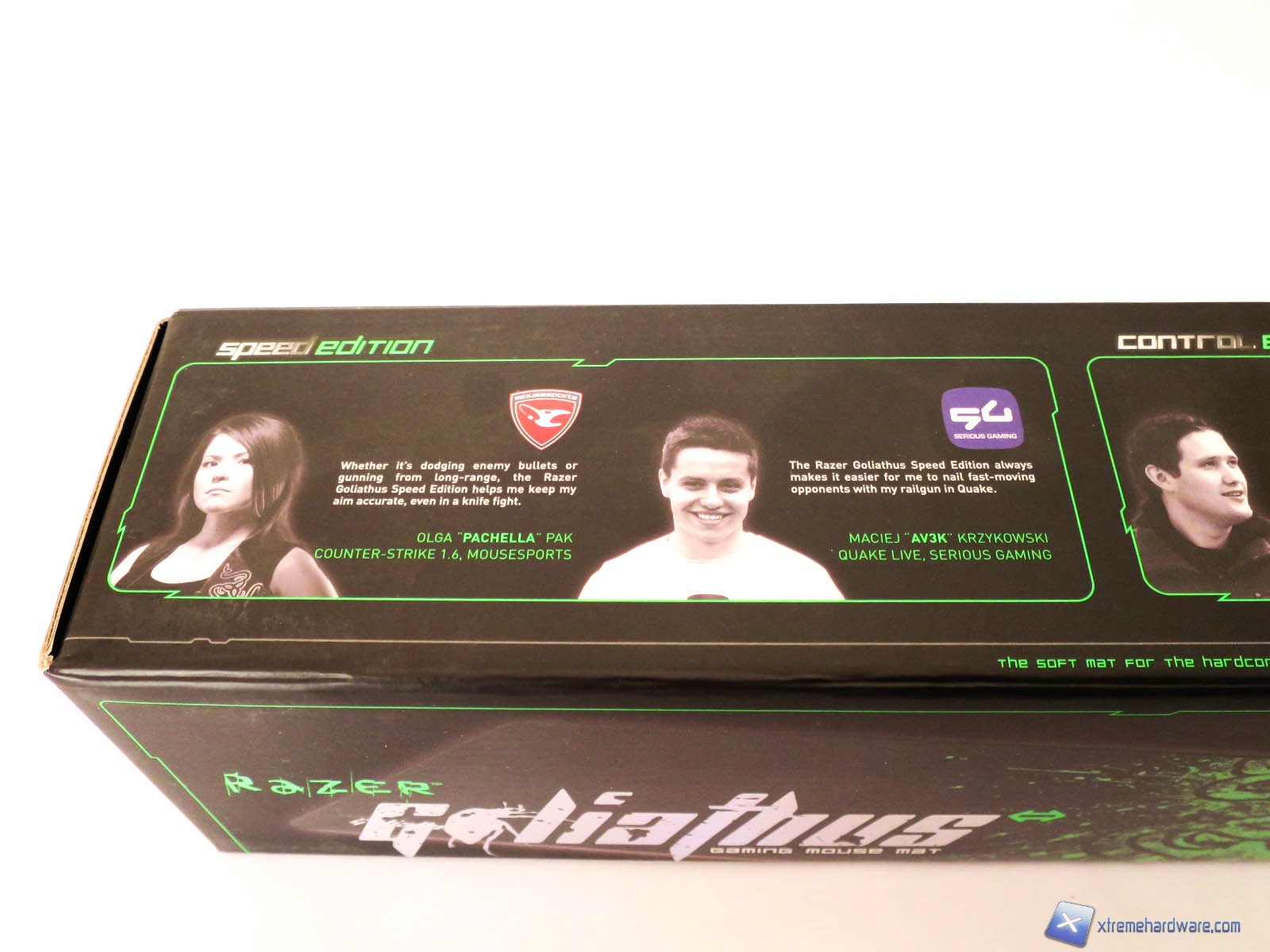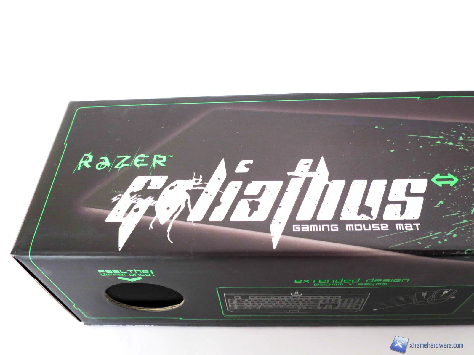 Anche per il mousepad abbiamo una confezione di cartone sulla quale sono riportate tutte le informazioni relative al prodotto. Notiamo come in tutti i lati siano presenti varie immagini illustrative, le caratteristiche tecniche del mousepad ed alcuni testimonials. Sulla confezione non mancano anche riferimenti alle altre dimensioni disponibili del Goliathus.