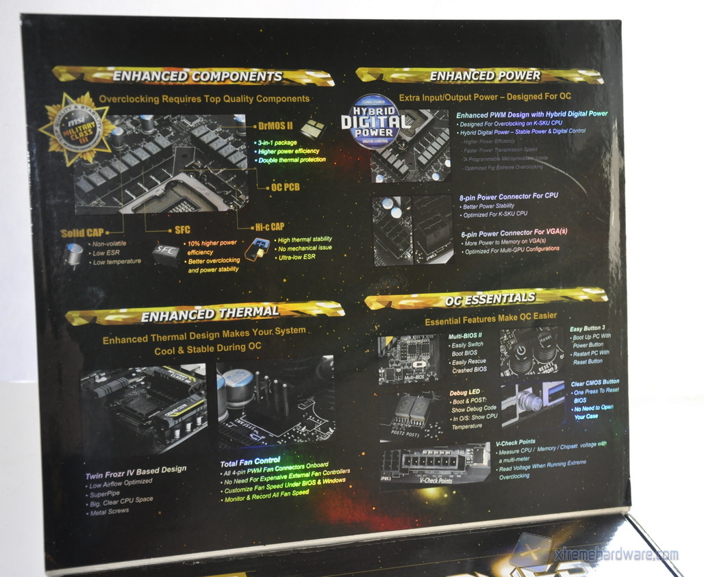 Il layout è ordinato e pulito. Gli spazi denotano uno studio accurato da parte degli ingegneri che l’hanno progettata. Spiccano i colori adottati nelle schede video della serie Lightning, con le caratteristiche strisce gialle su sfondo nero. Il connubio con queste schede video, nonché con le Avexir Core Mpower series che su licenza MSI riprendono lo stesso tema, sarà davvero perfetto, regalando agli appassionati di modding un PC dal design stupefacente, da mettere in bella mostra in un case finestrato o su un un banchetto.